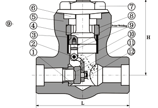 | 5 | 閥體 | A105 | A182F22 | A182F304(L) | A182F316(L) |